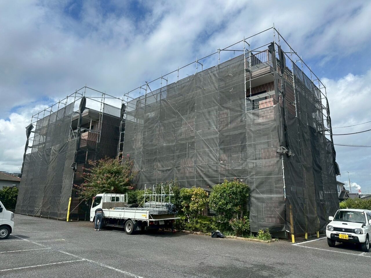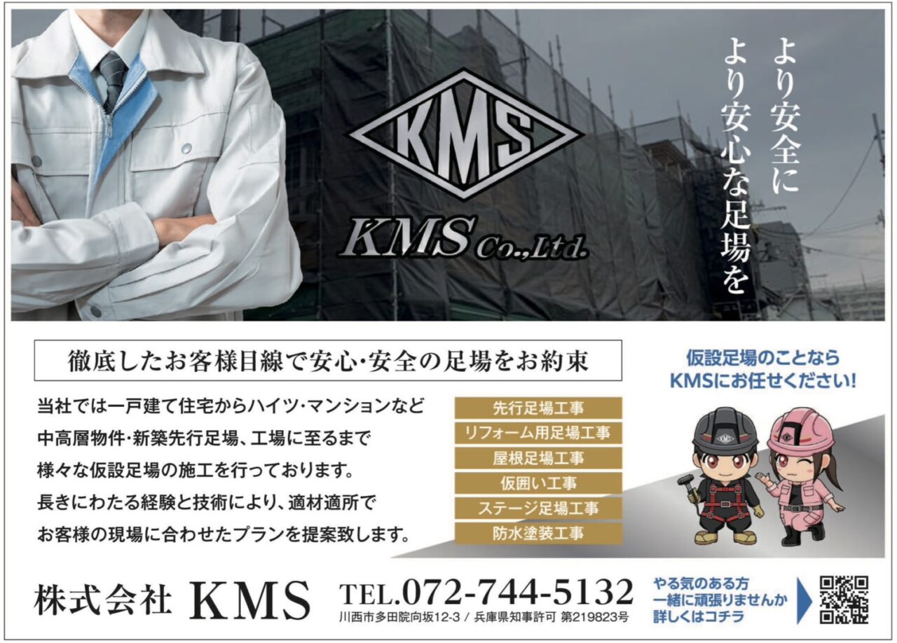 株式会社KMSでは一戸建て住宅からハイツ・マンションなど中高層物件・新築先行足場、工場に至るまで様々な仮設足場の施工を行っております。