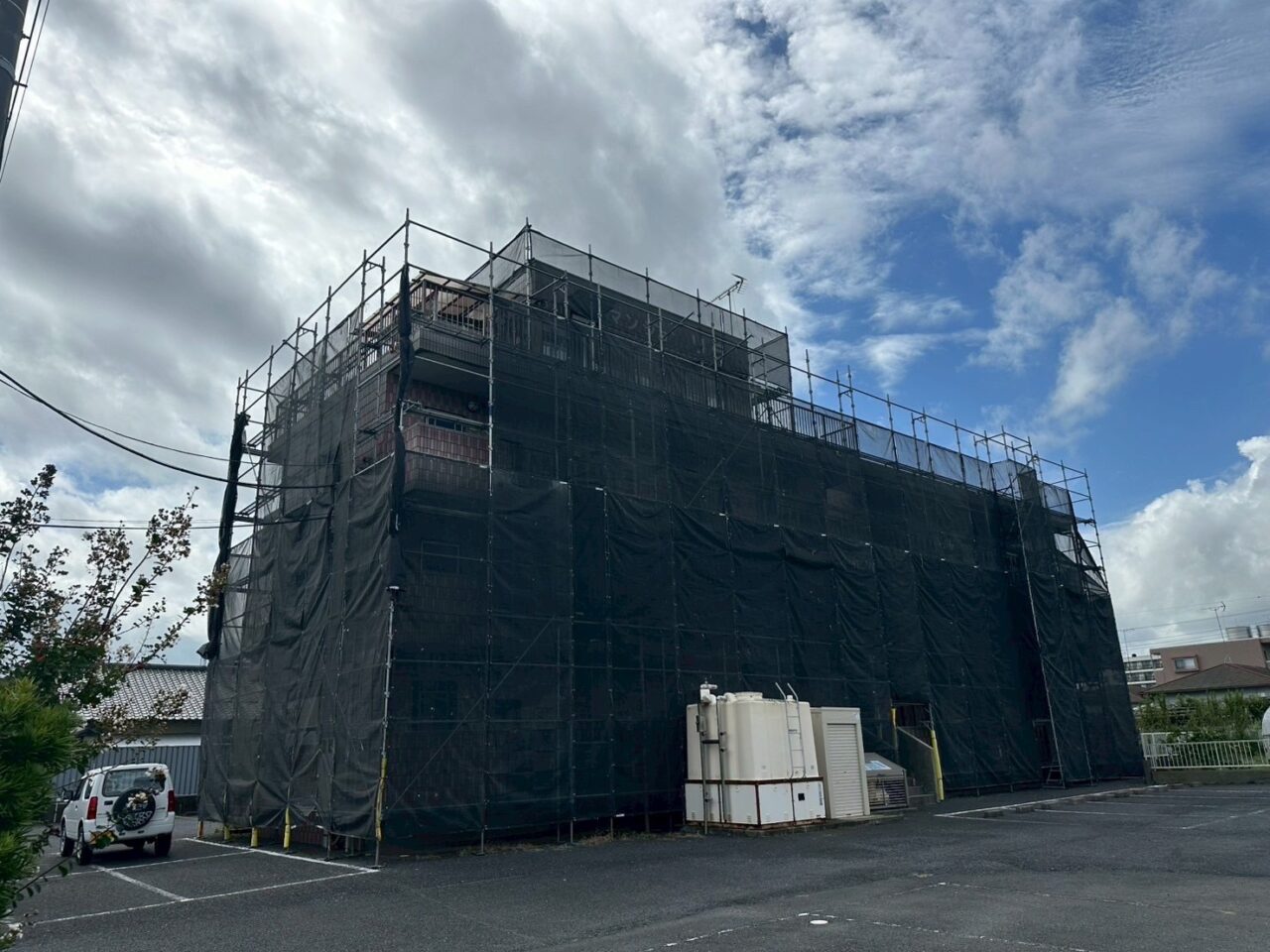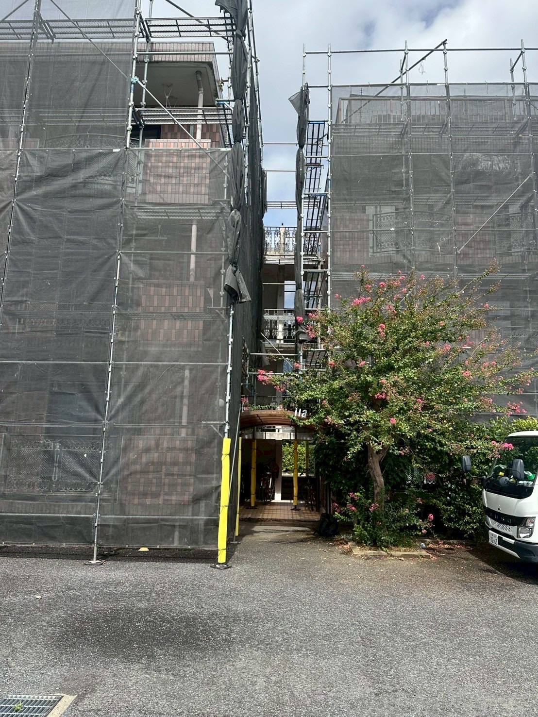 株式会社KMSでは、大阪・兵庫を拠点に関西一円で足場工事を手がけています。今回の施工実績は、茨城県にあるマンションの足場設置工事です。遠方での案件でしたが、当社の協力会社ネットワークを活用し、スムーズかつ安全に施工を行いました。